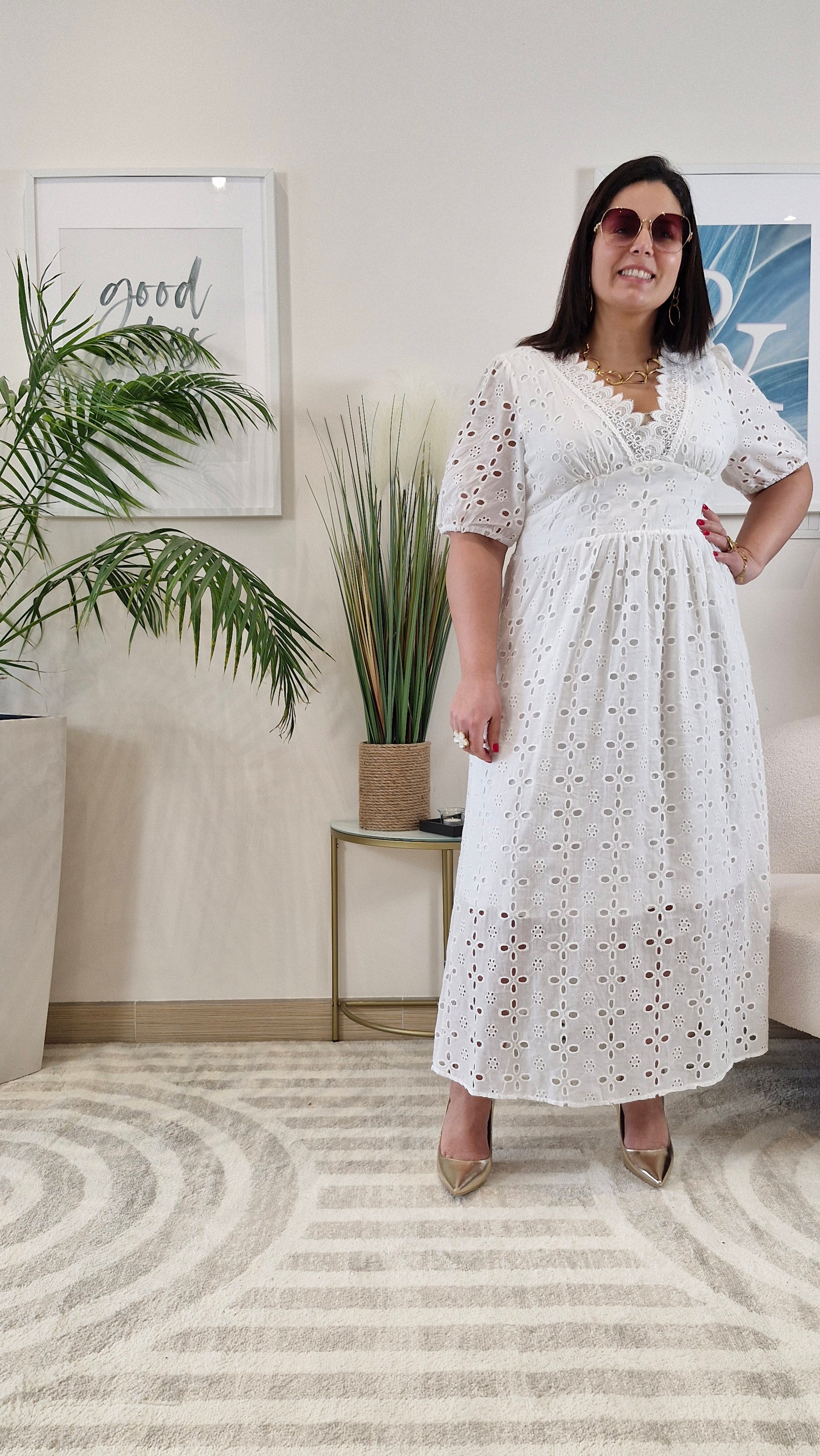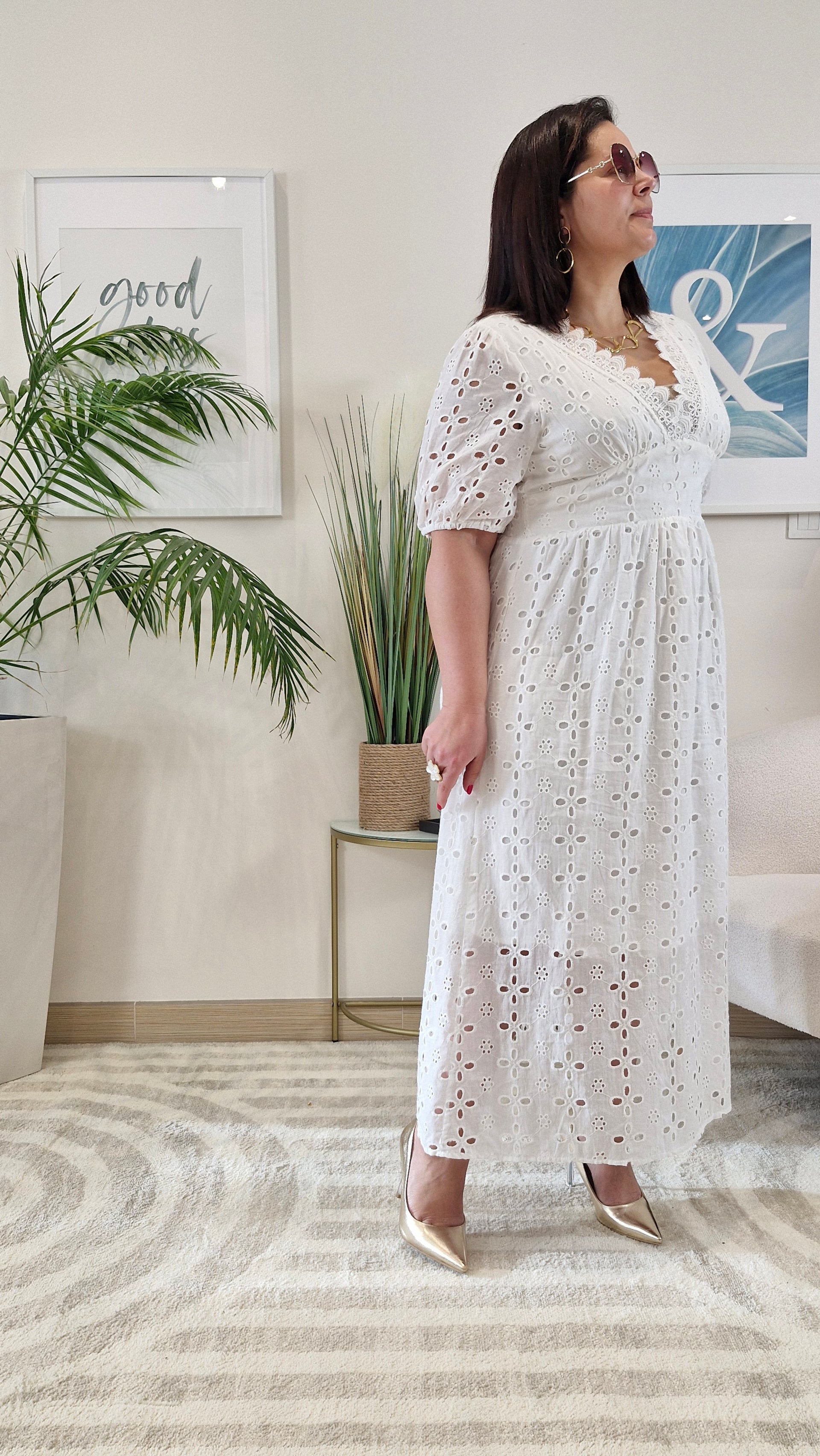 - Détails : broderie anglaise ajourée, finitions délicates